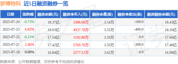 罗博特科融资融券信息显示,融资方面,当日融资买入1.94亿元,融资偿还1.6亿元,融资净买入3388.66万元,连续3日净买入累计9519.23万元。融券方面,融券卖出100.0股,融券偿还200.0股,融券余量3.54万股,融券余额637.09万元。融资融券余额18.43亿元。
