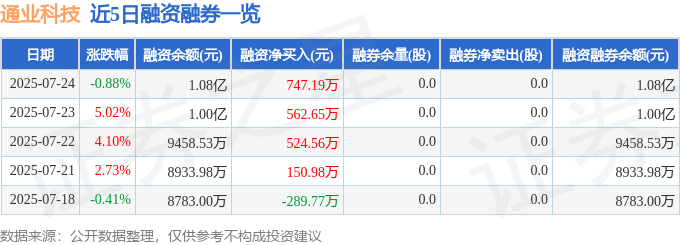 通业科技融资融券信息显示,融资方面,当日融资买入2147.94万元,融资偿还1400.75万元,融资净买入747.19万元,连续3日净买入累计1834.39万元。融券方面,融券卖出0.0股,融券偿还0.0股,融券余量0.0股,融券余额0.0万元。融资融券余额1.08亿元。