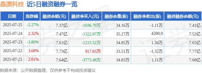 晶澳科技融资融券信息显示,融资方面,当日融资买入5017.64万元,融资偿还6054.43万元,融资净偿还1036.79万元。融券方面,融券卖出7200.0股,融券偿还1.83万股,融券余量34.16万股,融券余额397.96万元。融资融券余额7.41亿元。