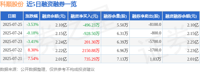科顺股份融资融券信息显示,融资方面,当日融资买入1929.92万元,融资偿还2426.15万元,融资净偿还496.23万元。融券方面,融券卖出4700.0股,融券偿还1.28万股,融券余量5.5万股,融券余额30.03万元。融资融券余额2.1亿元。
