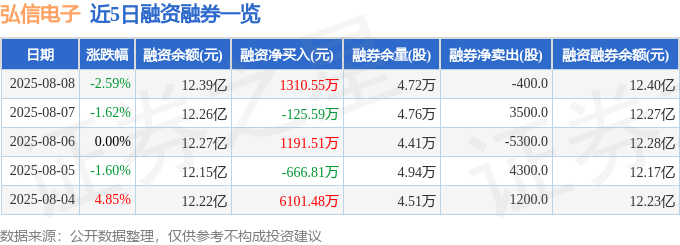 弘信电子融资融券信息显示,融资方面,当日融资买入1.11亿元,融资偿还9827.74万元,融资净买入1310.55万元。融券方面,融券卖出100.0股,融券偿还500.0股,融券余量4.72万股,融券余额136.6万元。融资融券余额12.4亿元。