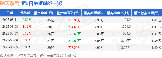 截至2025年8月11日收盘,陕天然气(002267)报收于8.05元,下跌0.62%,换手率1.08%,成交量12.03万手,成交额9669.91万元。