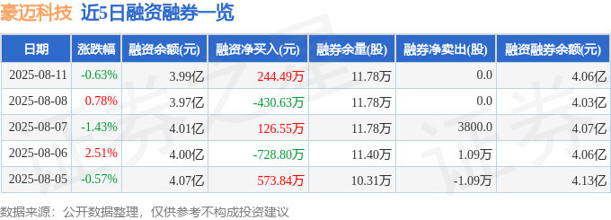 豪迈科技融资融券信息显示,融资方面,当日融资买入679.9万元,融资偿还435.41万元,融资净买入244.49万元。融券方面,融券卖出100.0股,融券偿还100.0股,融券余量11.78万股,融券余额666.06万元。融资融券余额4.06亿元。