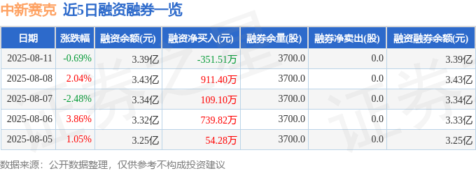 中新赛克融资融券信息显示,融资方面,当日融资买入3959.43万元,融资偿还4310.94万元,融资净偿还351.51万元。融券方面,融券卖出0.0股,融券偿还0.0股,融券余量3700.0股,融券余额10.64万元。融资融券余额3.39亿元。