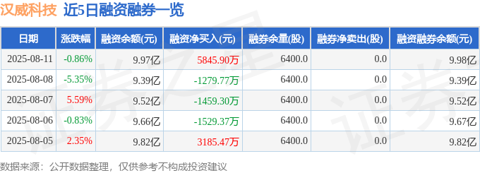 近5日融资融券数据一览见下表: