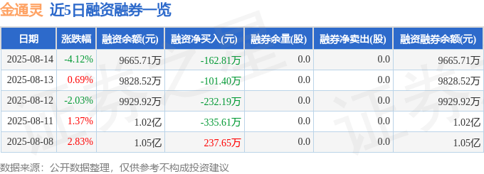 金通灵融资融券信息显示,融资方面,当日融资买入363.62万元,融资偿还526.44万元,融资净偿还162.81万元。融券方面,融券卖出0.0股,融券偿还0.0股,融券余量0.0股,融券余额0.0万元。融资融券余额9665.71万元。