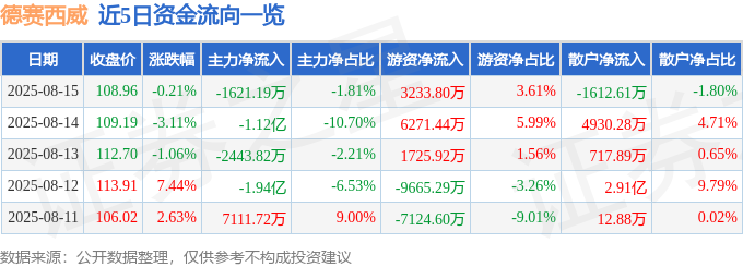 8月15日的资金流向数据方面,主力资金净流出1621.19万元,占总成交额1.81%,游资资金净流入3233.8万元,占总成交额3.61%,散户资金净流出1612.61万元,占总成交额1.8%。