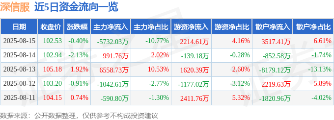 8月15日的资金流向数据方面,主力资金净流出5732.03万元,占总成交额10.77%,游资资金净流入2214.61万元,占总成交额4.16%,散户资金净流入3517.41万元,占总成交额6.61%。