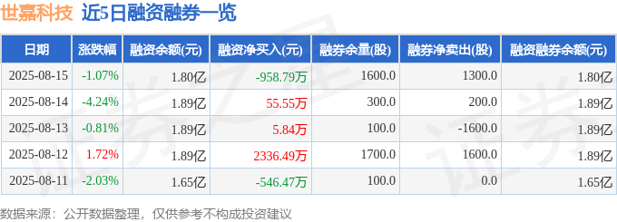 截至2025年8月15日收盘,世嘉科技(002796)报收于13.86元,下跌1.07%,换手率7.8%,成交量17.66万手,成交额2.44亿元。