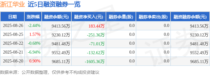 截至2025年8月26日收盘,浙江华业(301616)报收于56.75元,下跌2.44%,换手率13.95%,成交量2.79万手,成交额1.6亿元。