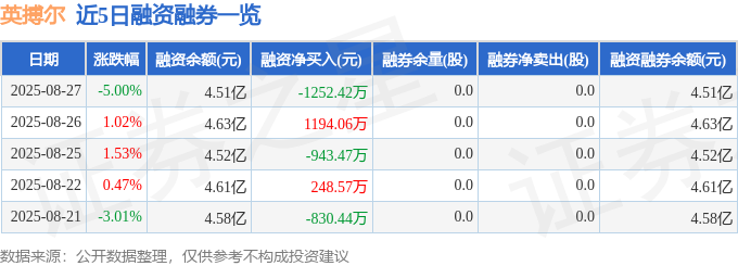 近5日融资融券数据一览见下表: