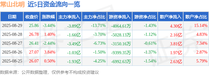 8月29日的资金流向数据方面,主力资金净流出3.89亿元,占总成交额13.71%,游资资金净流出4064.61万元,占总成交额1.43%,散户资金净流入4.3亿元,占总成交额15.14%。