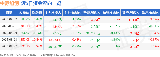 9月2日的资金流向数据方面,主力资金净流出14.89亿元,占总成交额4.79%,游资资金净流入3.76亿元,占总成交额1.21%,散户资金净流入11.14亿元,占总成交额3.59%。