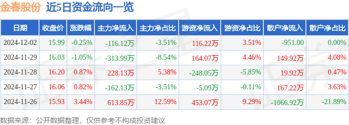 12月2日的资金流向数据方面,主力资金净流出116.12万元,占总成交额3.51%,游资资金净流入116.22万元,占总成交额3.51%,散户资金净流出0.1万元。