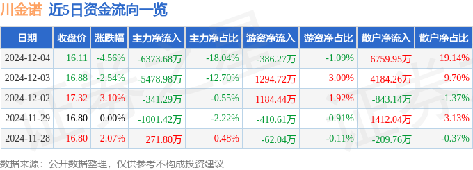 12月4日的资金流向数据方面,主力资金净流出6373.68万元,占总成交额18.04%,游资资金净流出386.27万元,占总成交额1.09%,散户资金净流入6759.95万元,占总成交额19.14%。
