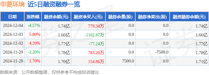 申菱环境融资融券信息显示,融资方面,当日融资买入4274.4万元,融资偿还3495.06万元,融资净买入779.34万元。融券方面,融券卖出0.0股,融券偿还0.0股,融券余量0.0股,融券余额0.0万元。融资融券余额1.74亿元。