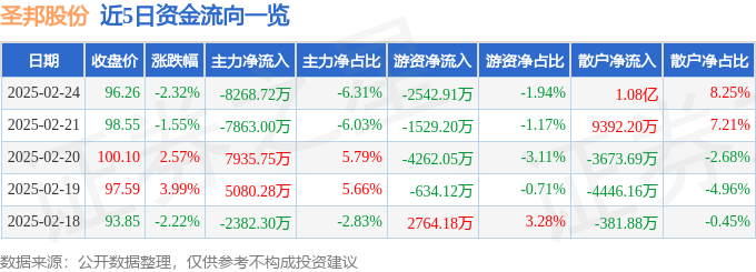 2月24日的资金流向数据方面,主力资金净流出8268.72万元,占总成交额6.31%,游资资金净流出2542.91万元,占总成交额1.94%,散户资金净流入1.08亿元,占总成交额8.25%。