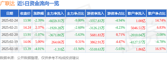 2月24日的资金流向数据方面,主力资金净流出6659.31万元,占总成交额9.8%,游资资金净流出3357.83万元,占总成交额4.94%,散户资金净流入1.0亿元,占总成交额14.74%。