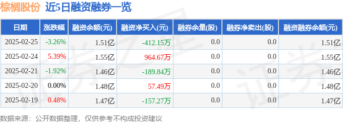 棕榈股份融资融券信息显示,融资方面,当日融资买入560.9万元,融资偿还973.06万元,融资净偿还412.15万元。融券方面,融券卖出0.0股,融券偿还0.0股,融券余量0.0股,融券余额0.0万元。融资融券余额1.51亿元。