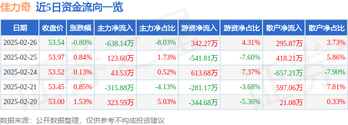 截至2025年2月26日收盘,佳力奇(301586)报收于53.54元,下跌0.8%,换手率7.54%,成交量1.48万手,成交额7942.47万元。