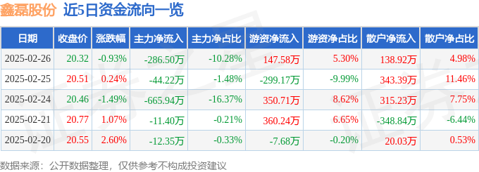 2月26日的资金流向数据方面,主力资金净流出286.5万元,占总成交额10.28%,游资资金净流入147.58万元,占总成交额5.3%,散户资金净流入138.92万元,占总成交额4.98%。
