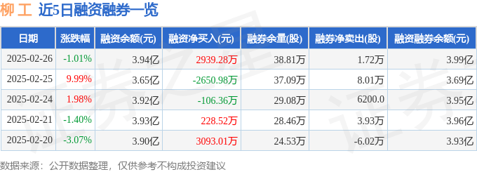 柳 工融资融券信息显示,融资方面,当日融资买入5678.29万元,融资偿还2739.01万元,融资净买入2939.28万元。融券方面,融券卖出7.54万股,融券偿还5.82万股,融券余量38.81万股,融券余额456.79万元。融资融券余额3.99亿元。