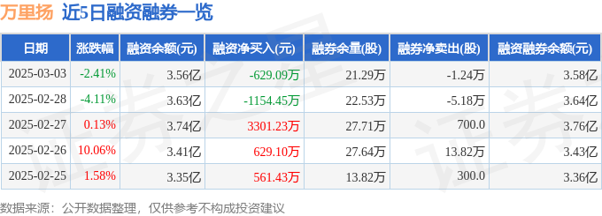 万里扬融资融券信息显示,融资方面,当日融资买入2711.02万元,融资偿还3340.11万元,融资净偿还629.09万元。融券方面,融券卖出4.85万股,融券偿还6.09万股,融券余量21.29万股,融券余额154.99万元。融资融券余额3.58亿元。