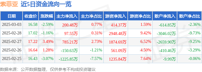 3月3日的资金流向数据方面,主力资金净流入200.48万元,占总成交额0.77%,游资资金净流入414.37万元,占总成交额1.59%,散户资金净流出614.85万元,占总成交额2.36%。