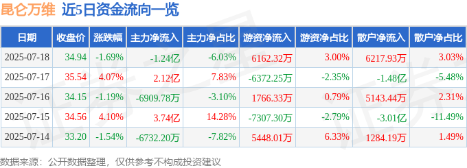 截至2025年7月18日收盘,昆仑万维(300418)报收于34.94元,下跌1.69%,换手率4.64%,成交量58.24万手,成交额20.52亿元。